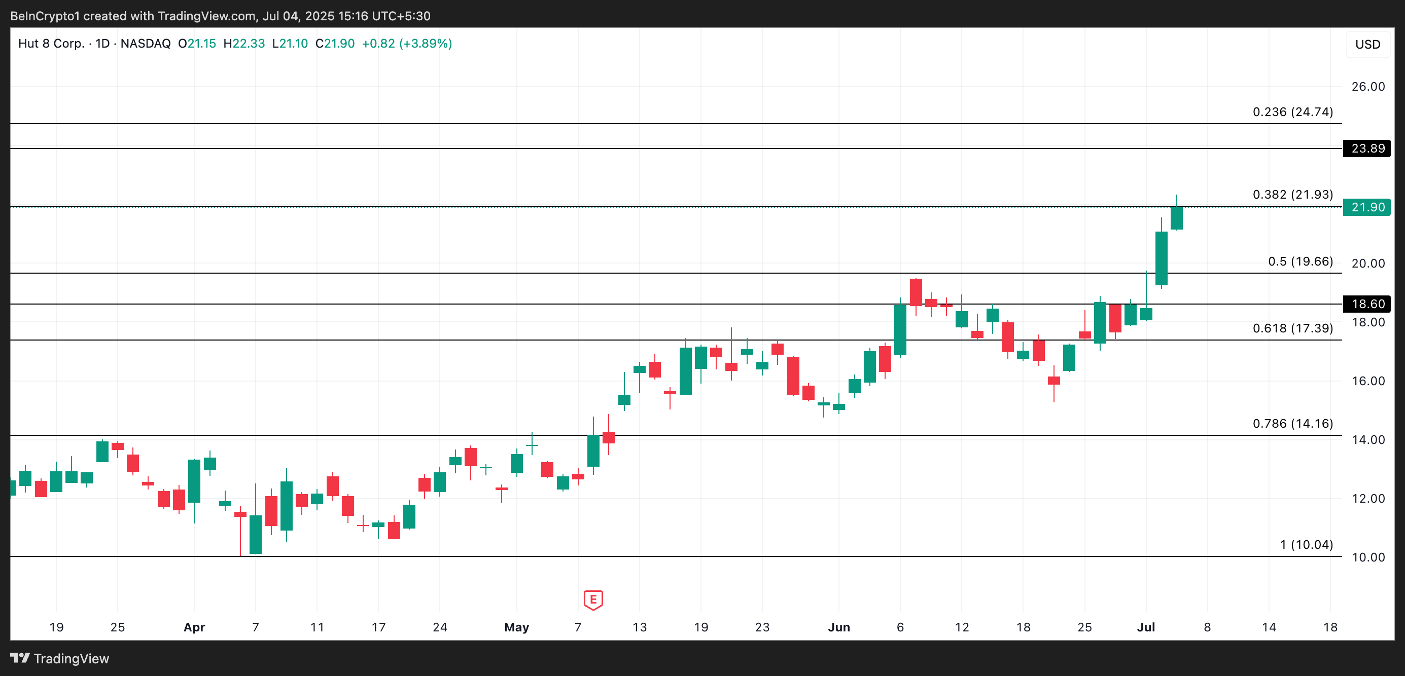 Yesterday, HUT closed at $21.90, noting 5% gains on the day. If buying pressure builds at the open, HUT could edge up to $21.93.