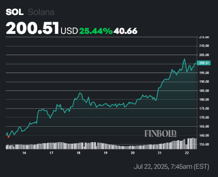 At press time, Solana was trading at $200.43, up nearly 5% in the last 24 hours and 25% over the past week.