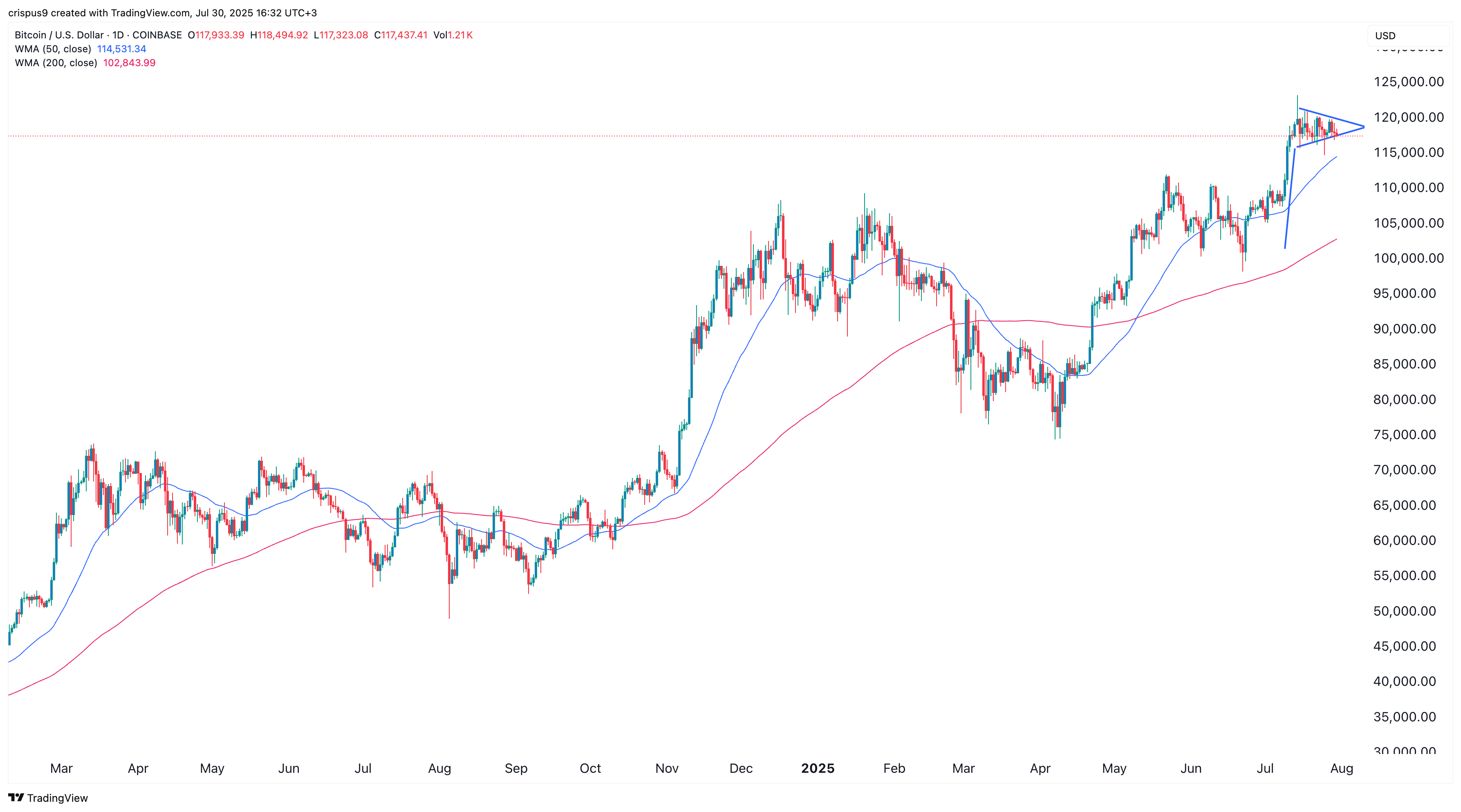 - Bitcoin price has formed a bullish pennant pointing to a strong rebound.