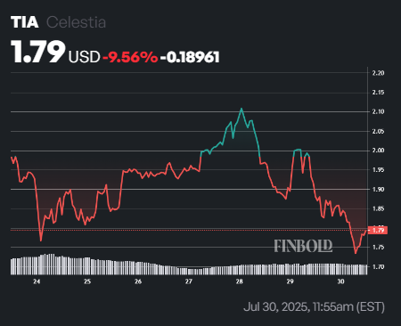 At press time, TIA was trading at $1.79, reflecting a 4.7% decline over the past 24 hours and a nearly 10% drop over the past week.