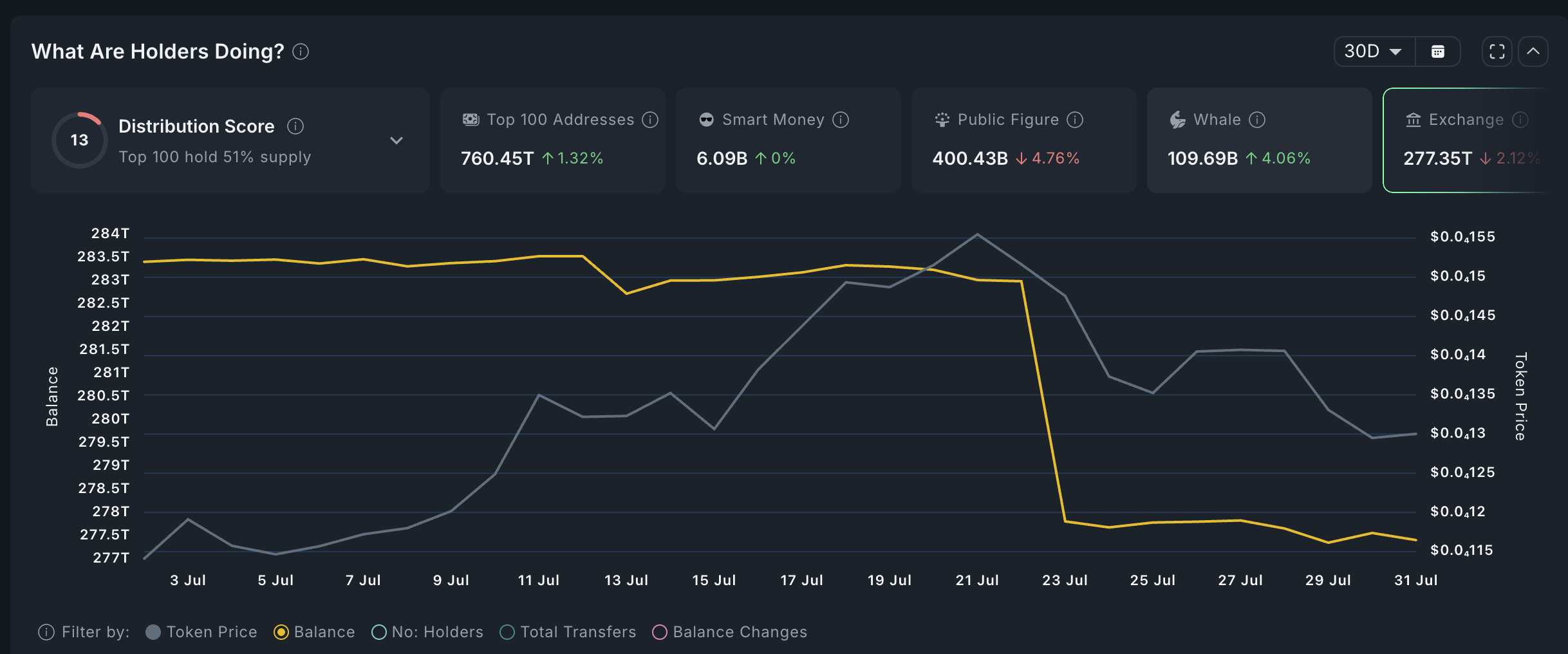 Exchange balances fall when investors move their tokens to self-custody, typically expecting a price recovery. Historically, most tokens surge when exchange outflows are in an upward trajectory.