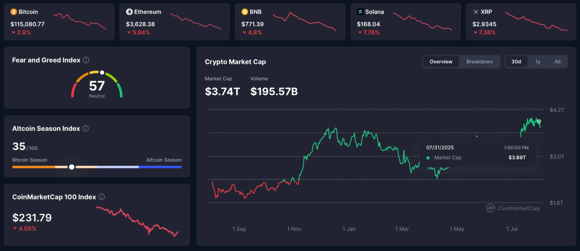 As mentioned, the SPX situation is not isolated. The crypto markets bled $150 billion in total in the wake of new tariff discussions, its market cap falling from $3.89 trillion to $3.74 trillion.
