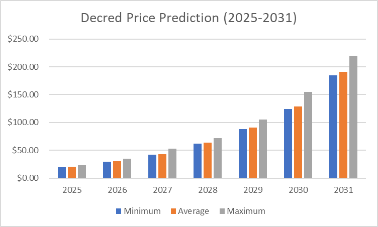 The price of Decred is predicted to reach a minimum level of $25.25 in 2026. The Decred price can reach a maximum level of $31.26 with an average price of $26.17.