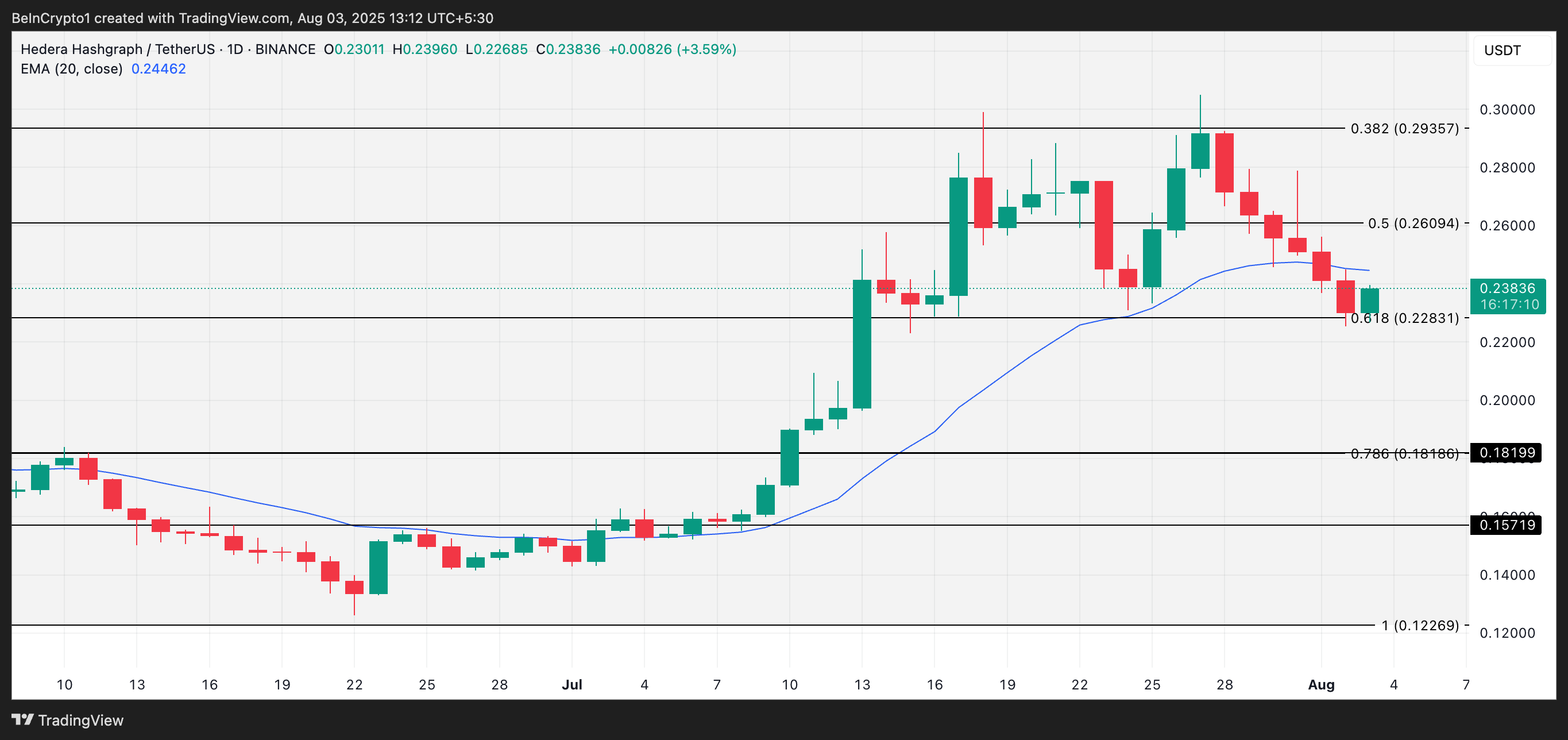 HBAR Drops Under 20-Day EMA as Bears Take Over