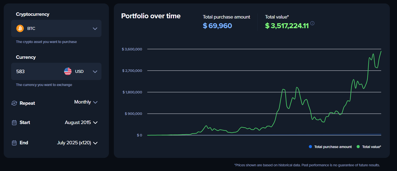 Meanwhile, we made a similar assessment with the same investment strategy for Bitcoin. Again, $583 every month for ten years would have resulted in a total spending of $69,960. However, with Bitcoin, the investment would be worth $3.5 million today. While lower than XRP, it is still enough for an investor to consider retirement.