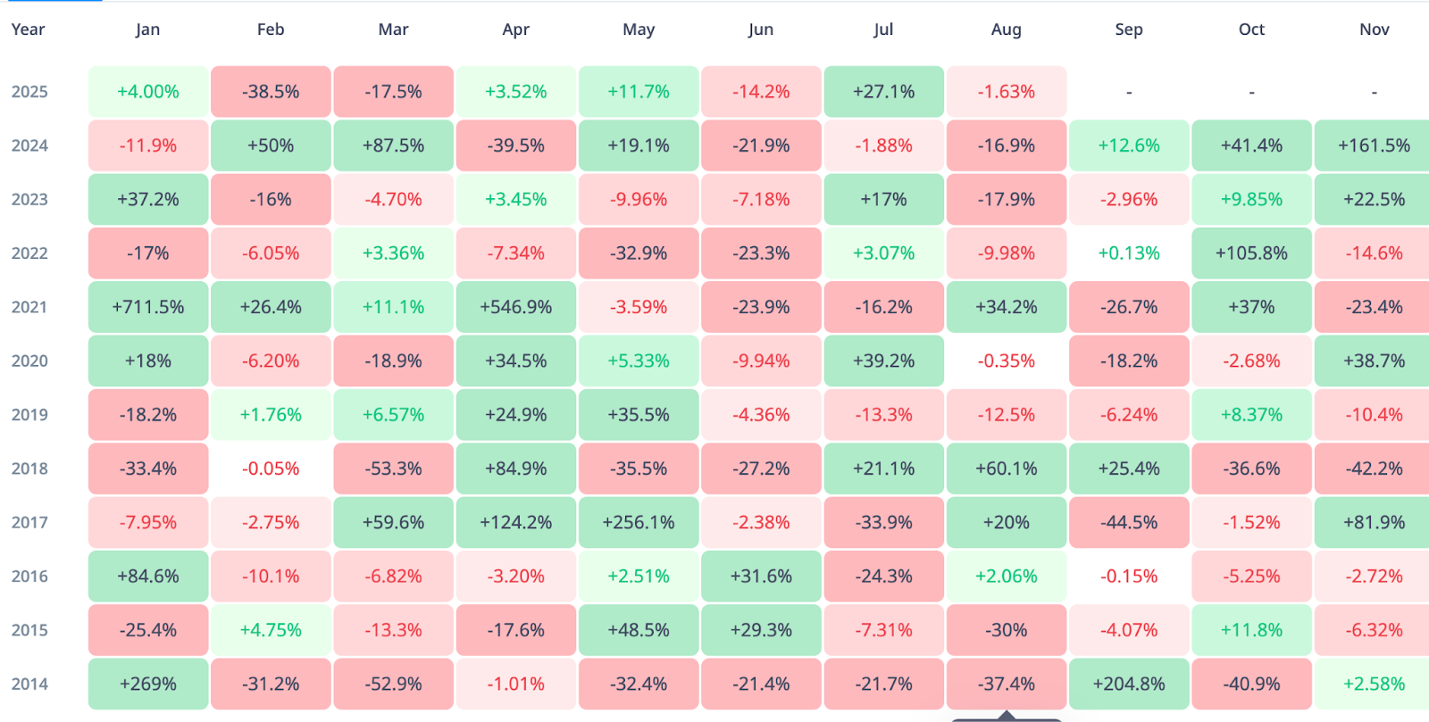 Even this year, Dogecoin is already down over 1.6% in August. These consistent losses point to what traders are calling the “Dogecoin August Curse.”