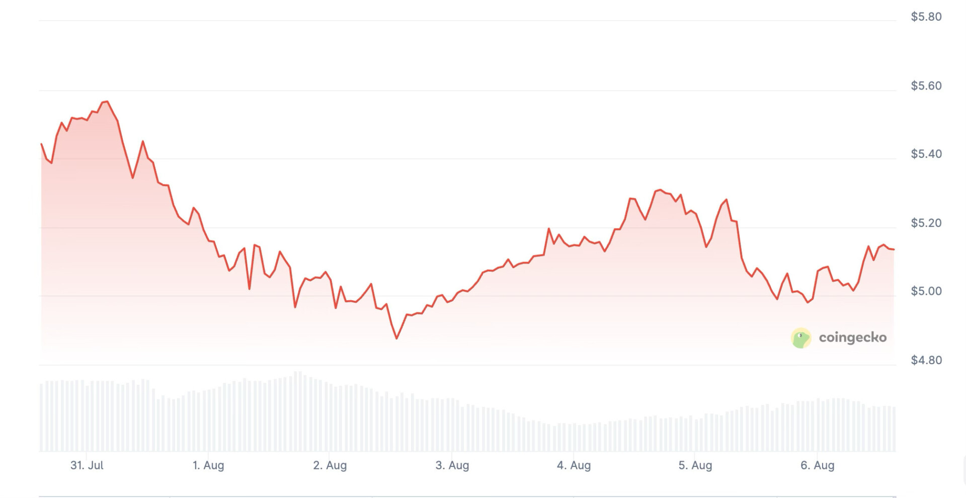 • A break below $5.00 could trigger a cascade toward $4.812.
