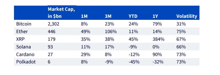 WisdomTree’s correlation table revealed XRP had the lowest correlation with Bitcoin (0.63) among the larger coins listed. That means XRP could be an effective counterweight in portfolios already containing Bitcoin or Ether, potentially lowering overall risk when markets shift.