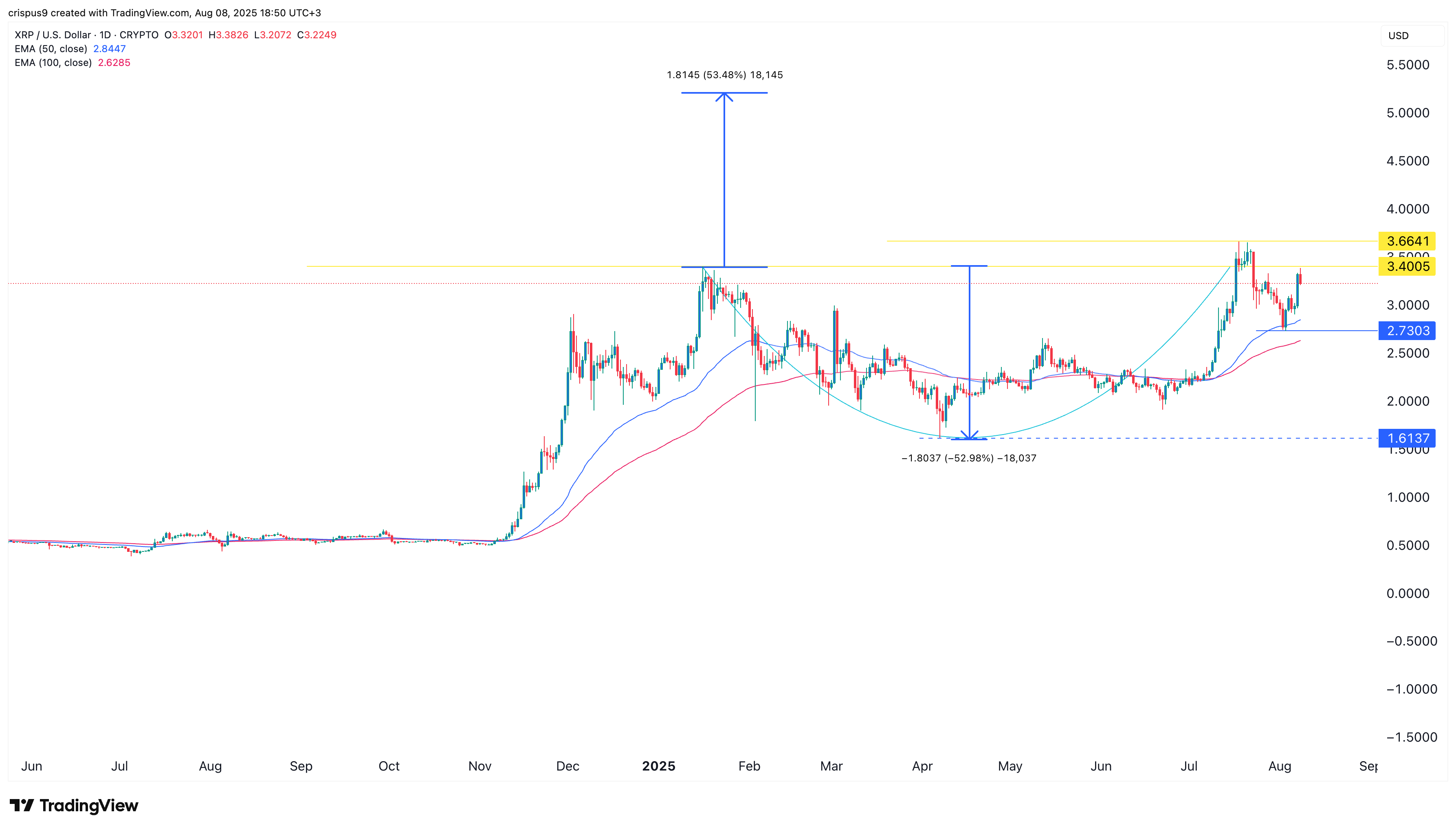 XRP price also has strong technicals as it formed a cup-and-handle pattern whose upper side is at $3.40 and the lower point is at $1.6137. As we wrote here, this pattern points to an eventual surge to $5.2.