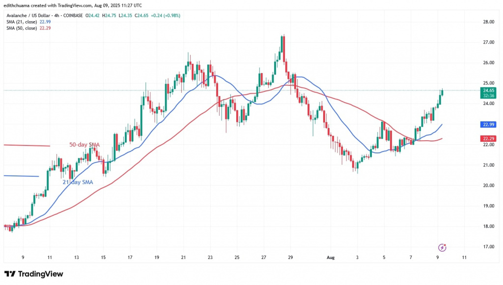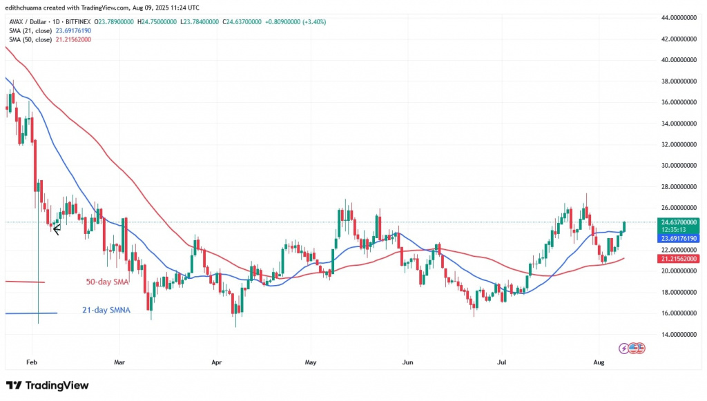 AVAX is falling after hitting resistance at $24. The altcoin returns to its trading range after hitting resistance at $24. Buyers are expected to hold the price above the upper resistance of $26. The altcoin continues to trade between $16 and $26.