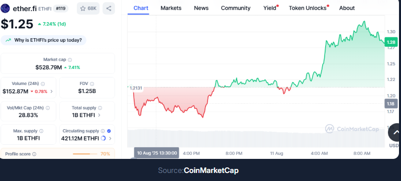 ETHFI Trading Activity Rises as Circulating Supply Reaches 42.1%