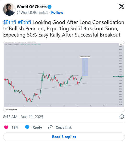 ETHFI Holds Bullish Pennant Formation Ahead of Key Breakout