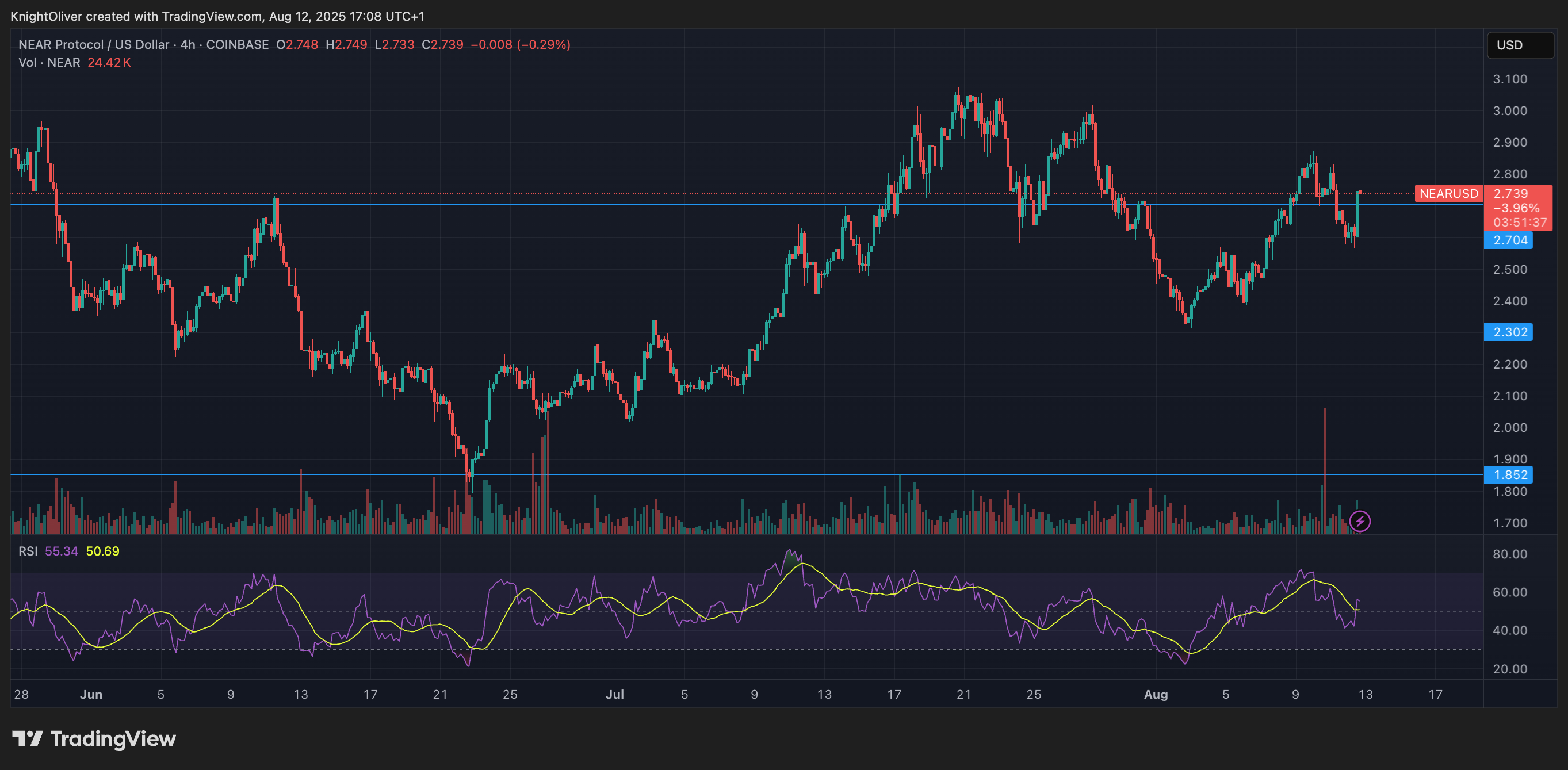 - This volatile configuration suggests profit-taking activities at the $2.68-$2.68 resistance zone established during the antecedent 24-hour analysis.