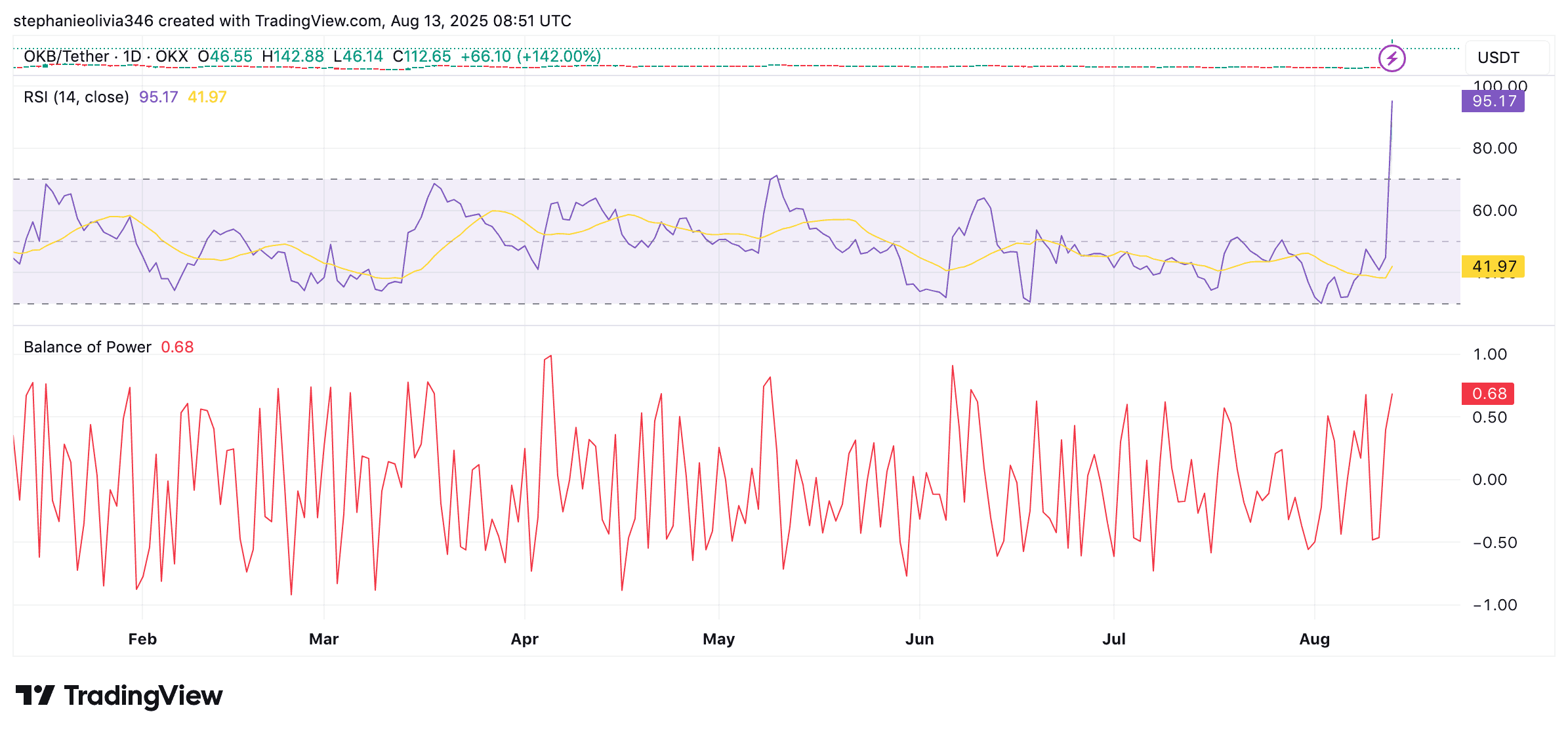 The total trading volume has risen to over $2.2 billion, according to CoinGecko data. Although OKB has retraced since its peak, it’s still 132% up daily and sits well above $100.