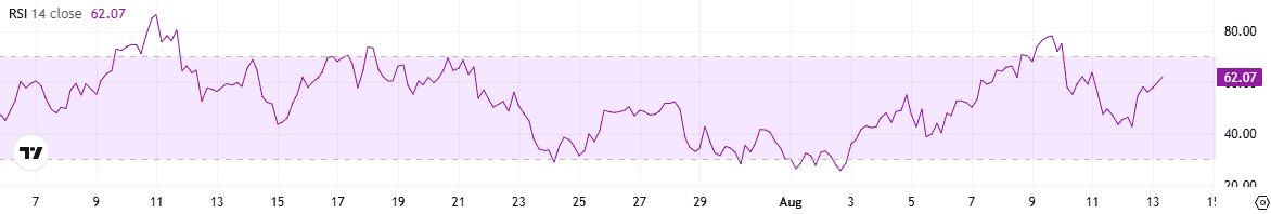 The meme coin’s Relative Strength Index (RSI) is also worth monitoring. The technical analysis tool measures the speed and magnitude of the latest price changes, helping traders identify potential reversal points.