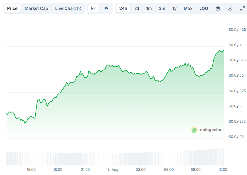 Shiba Inu’s price has jumped by over 8% in the past 24 hours and is currently trading at around $0.00001394 (per CoinGecko’s data). Its market capitalization exceeded $8.2 billion, making it the 28th-largest cryptocurrency.