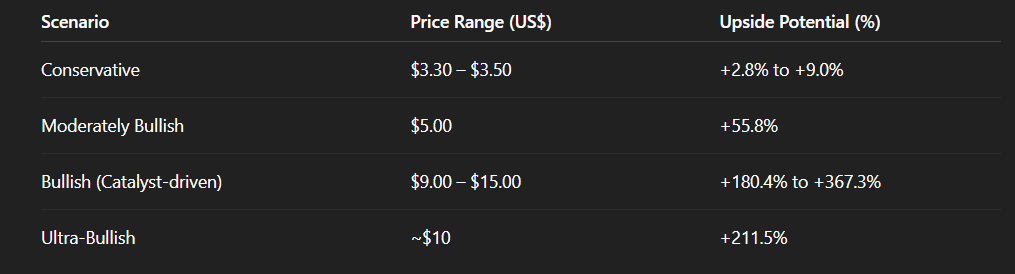 Stronger institutional interest, possible new partnerships with Ripple, and more favorable macroeconomic conditions could lead to a moderately bullish scenario, pushing the asset to around $5 by year-end. This would translate to a 55.8% upside.