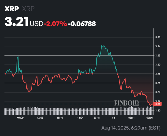At press time, August 14, XRP was trading at $3.21, down 2.07% in the previous 24 hours, but up 10.76% in the last month.