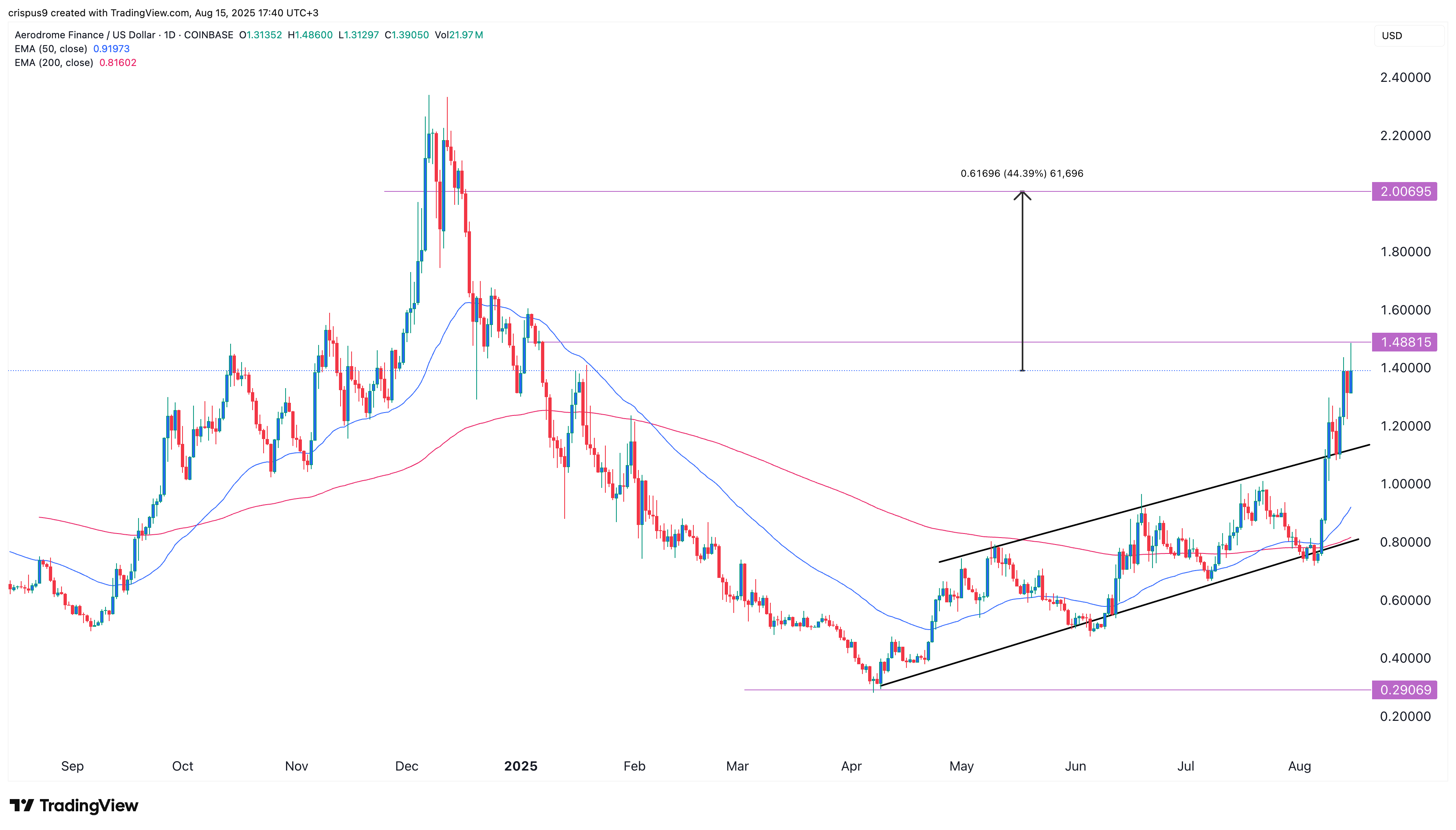 The daily chart shows that AERO has been in a strong bull run over the past few months, rising from a low of $0.2900 in April to $1.4880.