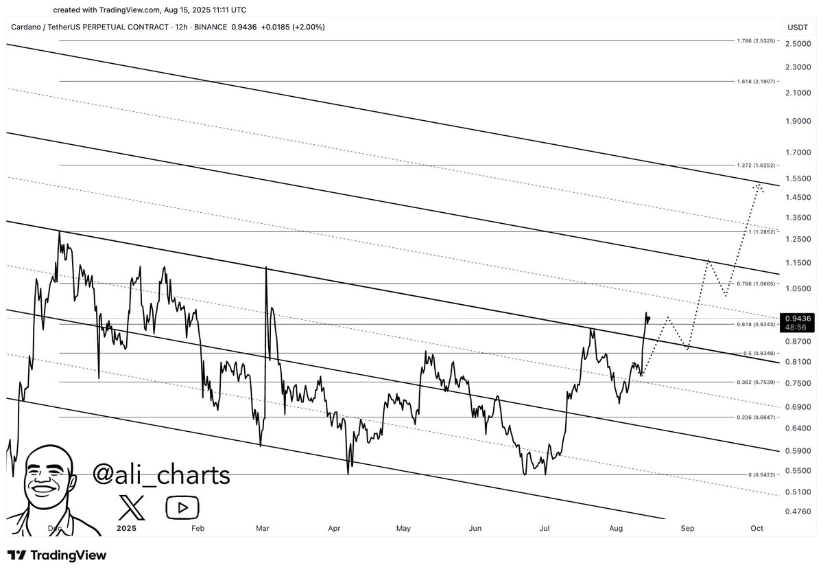 Popular trader Ali posted that Cardano $ADA breaking out! $1.50 in sight, hinting that the coin’s structure supports a bigger run.