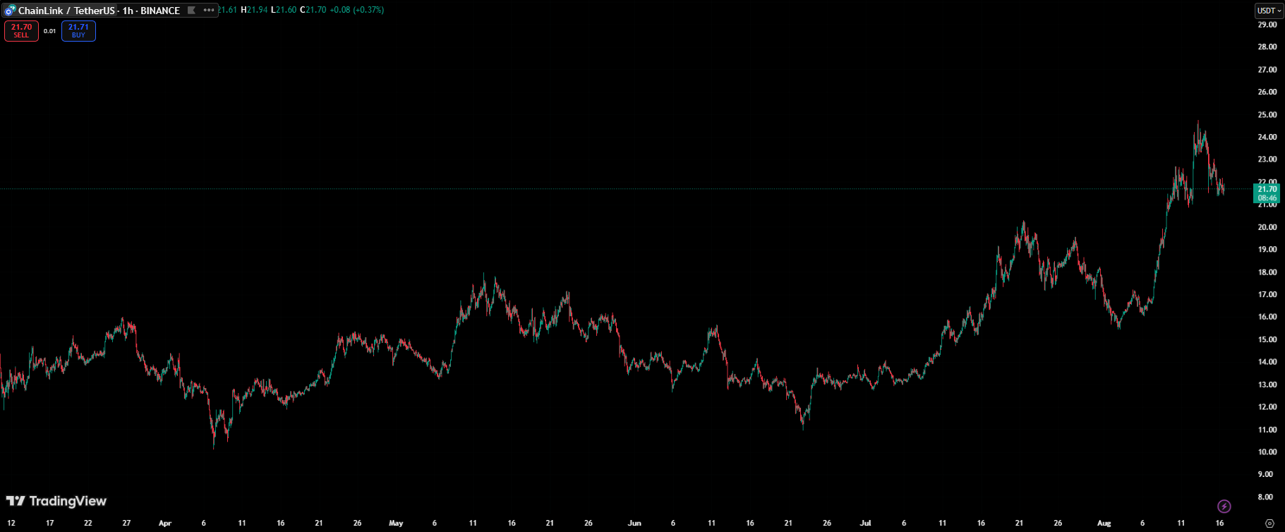 Chainlink is a cornerstone of Web3, delivering secure data to smart contracts across DeFi and institutional finance. LINK, priced at $21.54, shows bullish chart patterns, with forecasts ranging from $25–$30 in the conservative case to as high as $100 in aggressive scenarios. Its Cross-Chain Interoperability Protocol (CCIP) remains a key growth driver.