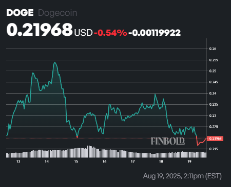 As of press time, DOGE was trading at $0.22, down over 1% in the past 24 hours and about 0.5% lower on the week.