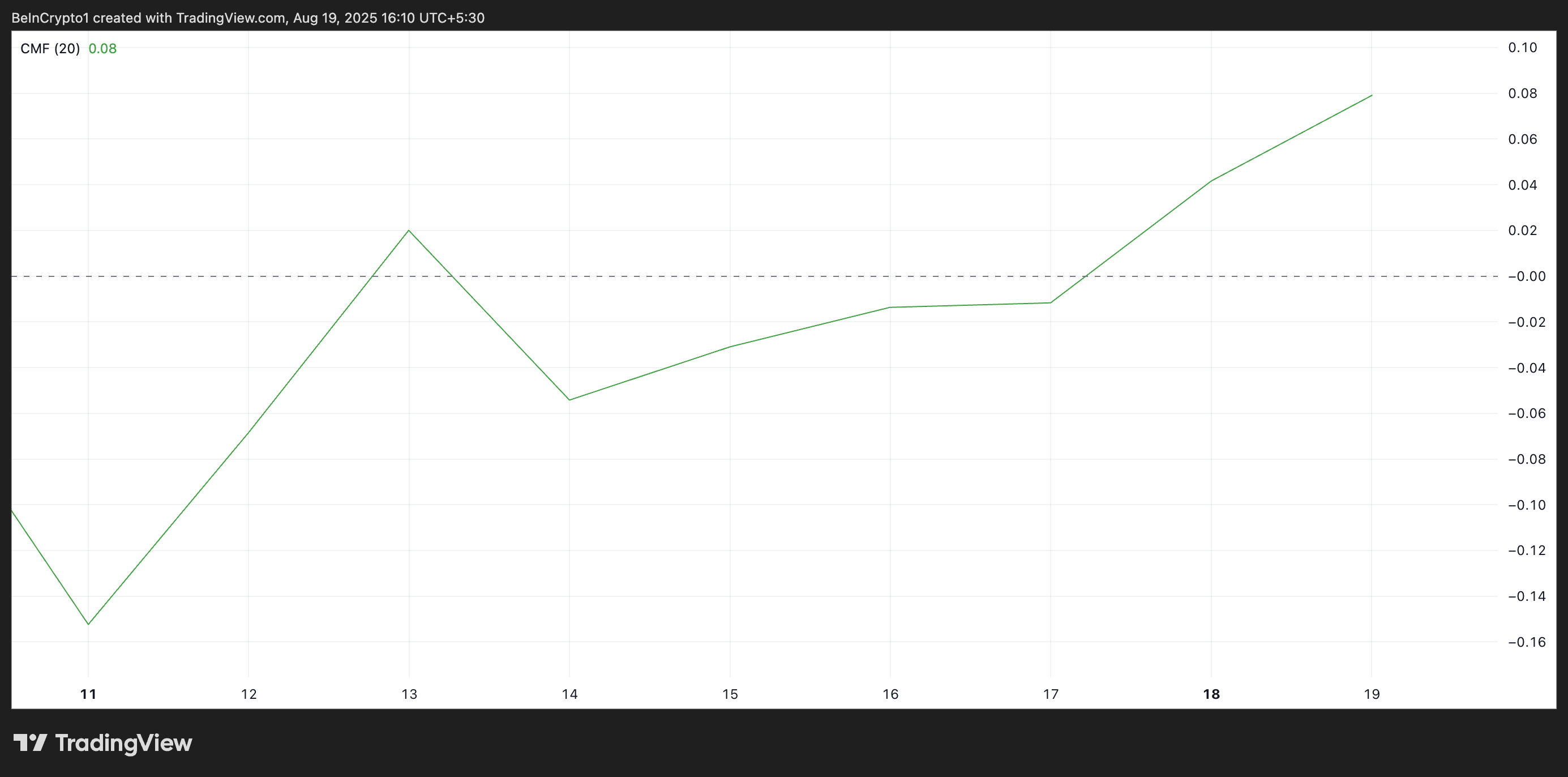 The pattern reflects a market in a steady uptrend, where each dip is met with renewed buying pressure. MNT’s surging Chaikin Money Flow (CMF) supports the uptick in buy-side pressure.
