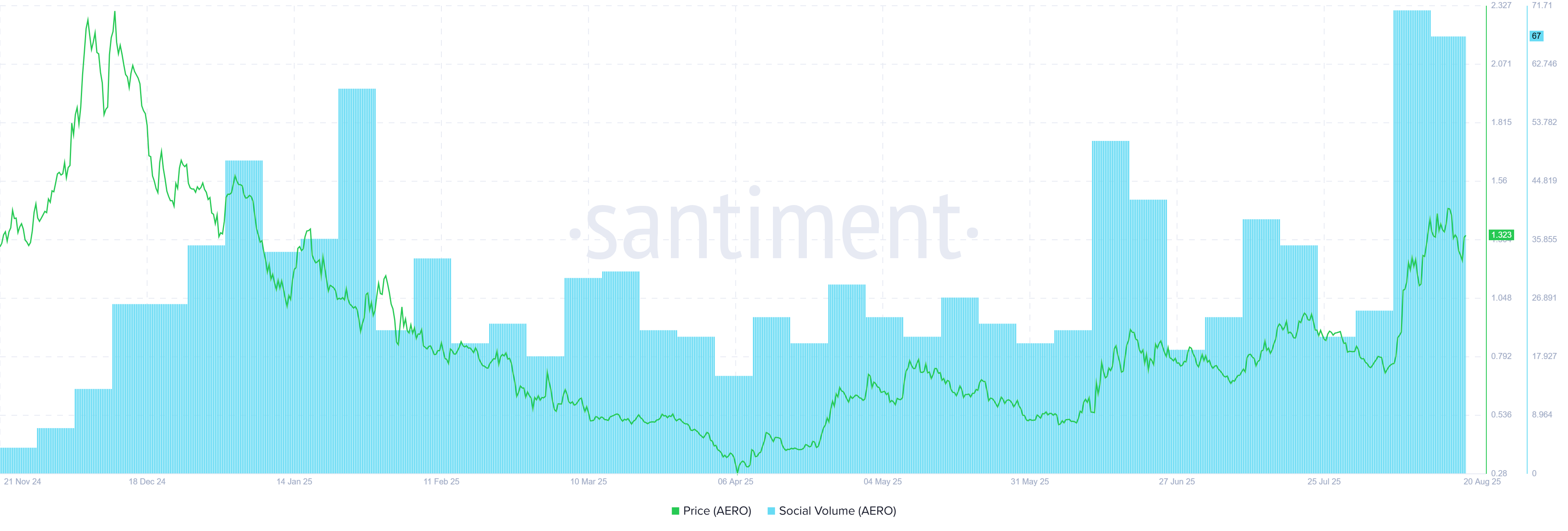 Santiment data also reveals that AERO’s social discussion volume in August reached an all-time high, reflecting growing investor interest in the project.