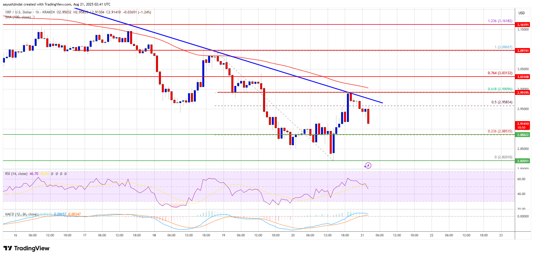 $XRP price is showing bearish signs below the $3.00 resistance zone. The price is struggling to recover above the $2.950 and $3.00 levels.