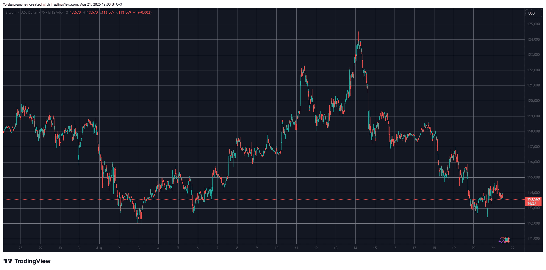 While some altcoins have headed north to new peaks, bitcoin’s price actually continued its recent downfall. The asset reached a new ATH last week, but has lost over ten grand since then. The past 24 hours also saw some declines, as BTC slipped to a three-week low of $112,500 (on Bitstamp).