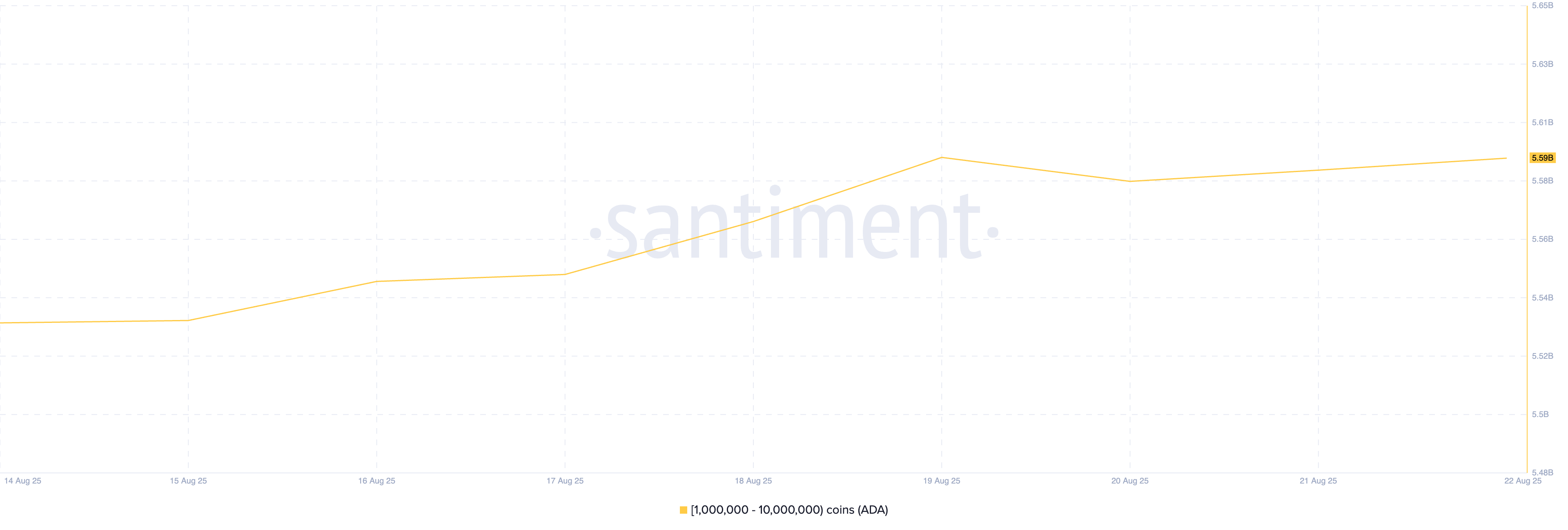 Layer-1 (L1) coin ADA has also noted strategic accumulation among crypto whales this week, despite the broader market dip. Per on-chain data, whales that hold between 1 million and 10 million coins have bought 60 million ADA coins during the week in review.
