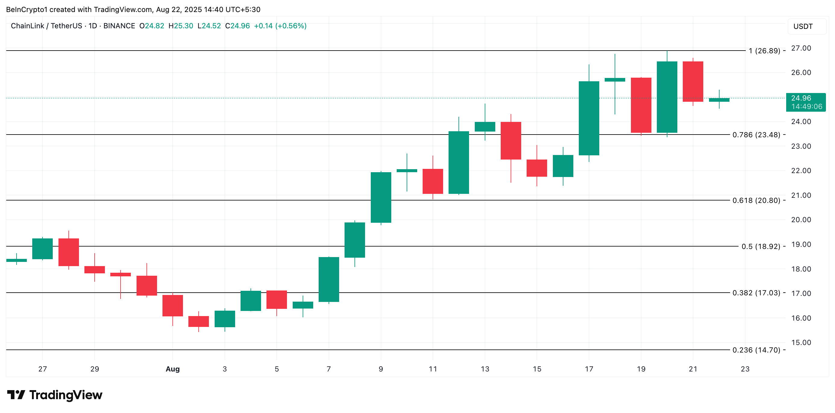 This surge in whale activity suggests growing confidence in the token’s near-term prospects. If accumulation persists, LINK could rally toward $26.89.