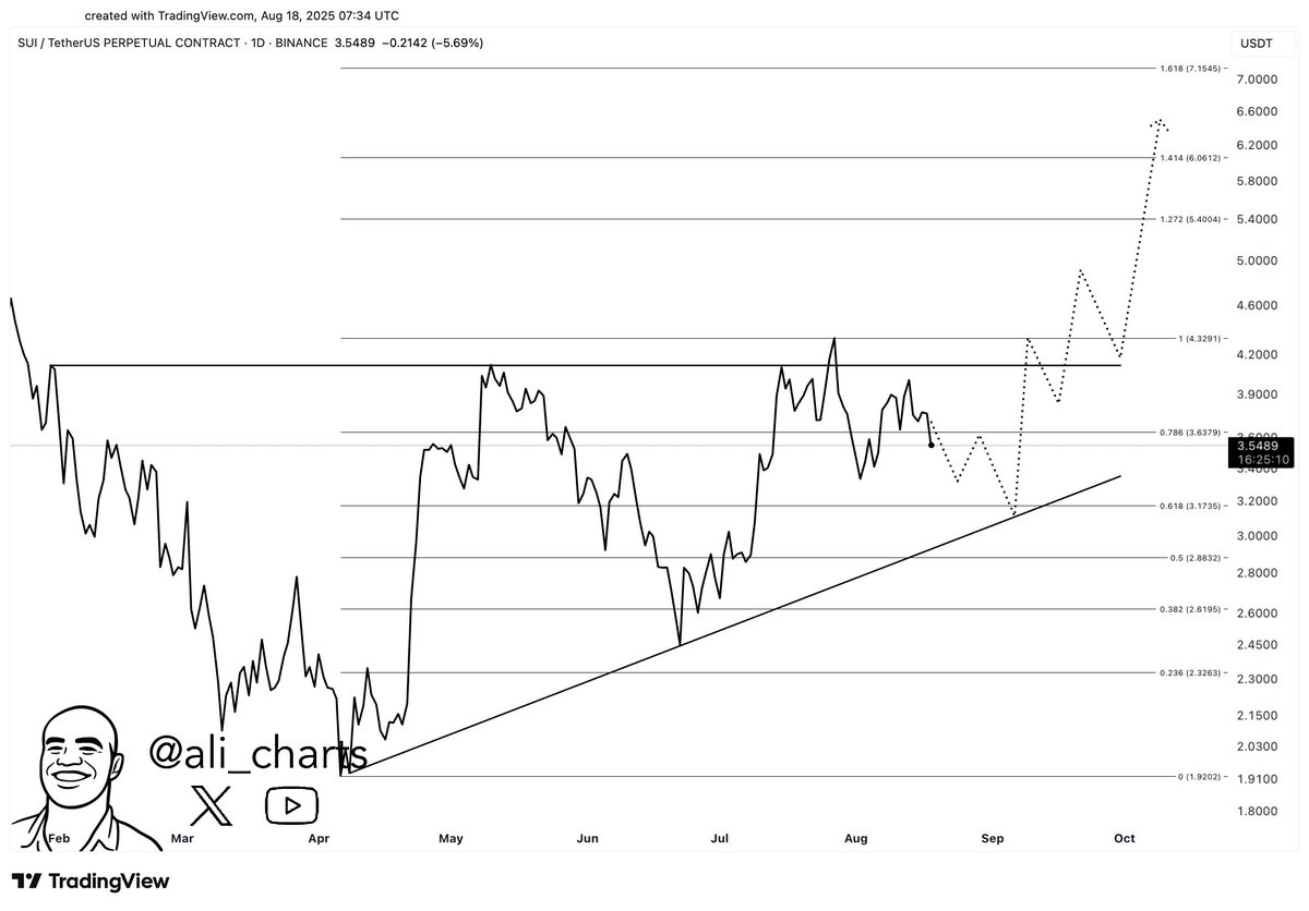 Recently, popular analysts such as Ali Martinez and Crypto Tony had anticipated a fall in SUI price to $3.17 support before another breakout attempt.