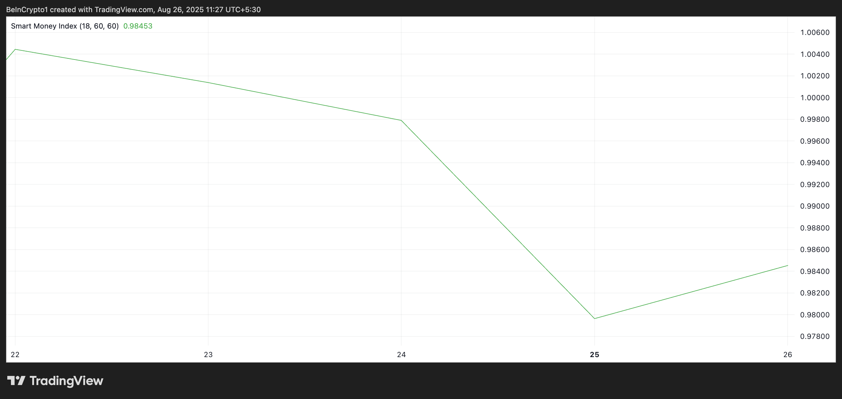 Further, buy-side pressure from key traders has stalled, contributing to the downward pressure on HBAR. The token’s Smart Money Index (SMI), at 0.98 at press time, has plunged slowly since August 22, confirming that momentum is shifting in favor of the bears.