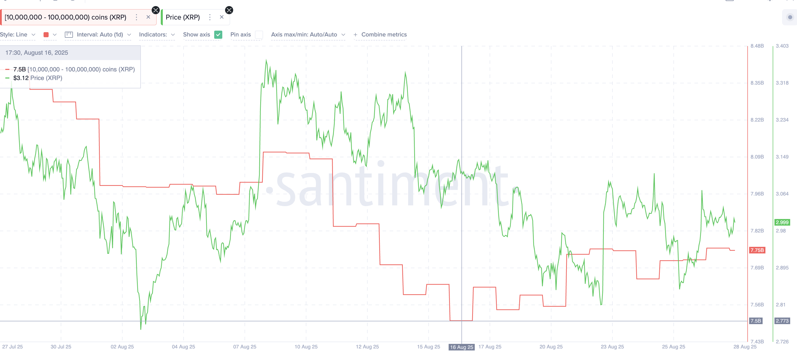 One of the clearest signals comes from large holders, often called whales. Since mid-August, the group holding between 10 million and 100 million XRP has added about 250 million tokens.
