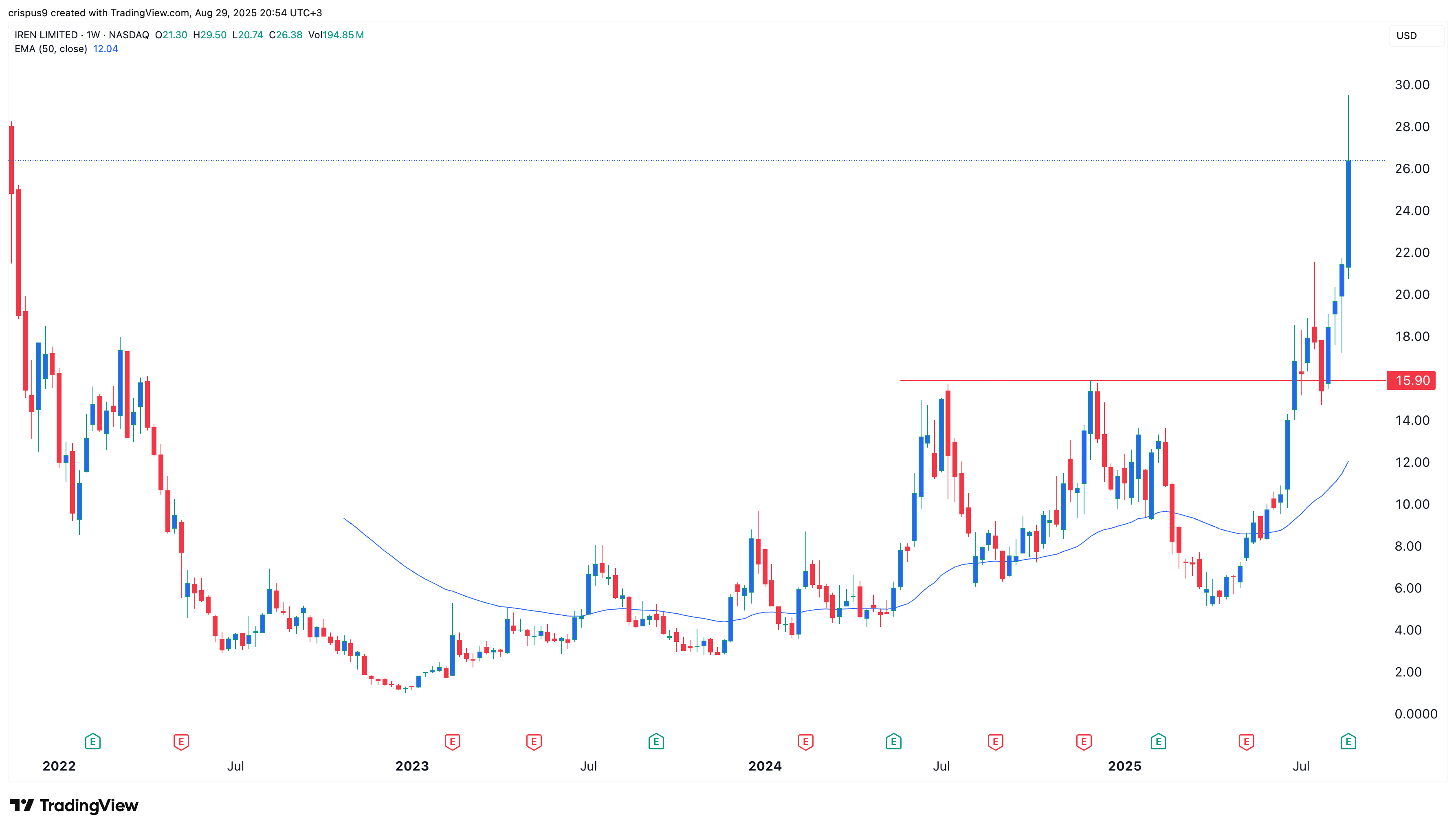 The weekly timeframe chart shows that the IREN stock has been in a strong bull run this year. This trend accelerated when the company published its financial results.