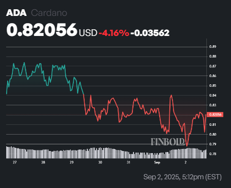 By press time, ADA was trading at $0.82, having made modest gains of about 0.55% in the last 24 hours, though it was down 4% on the weekly timeframe.