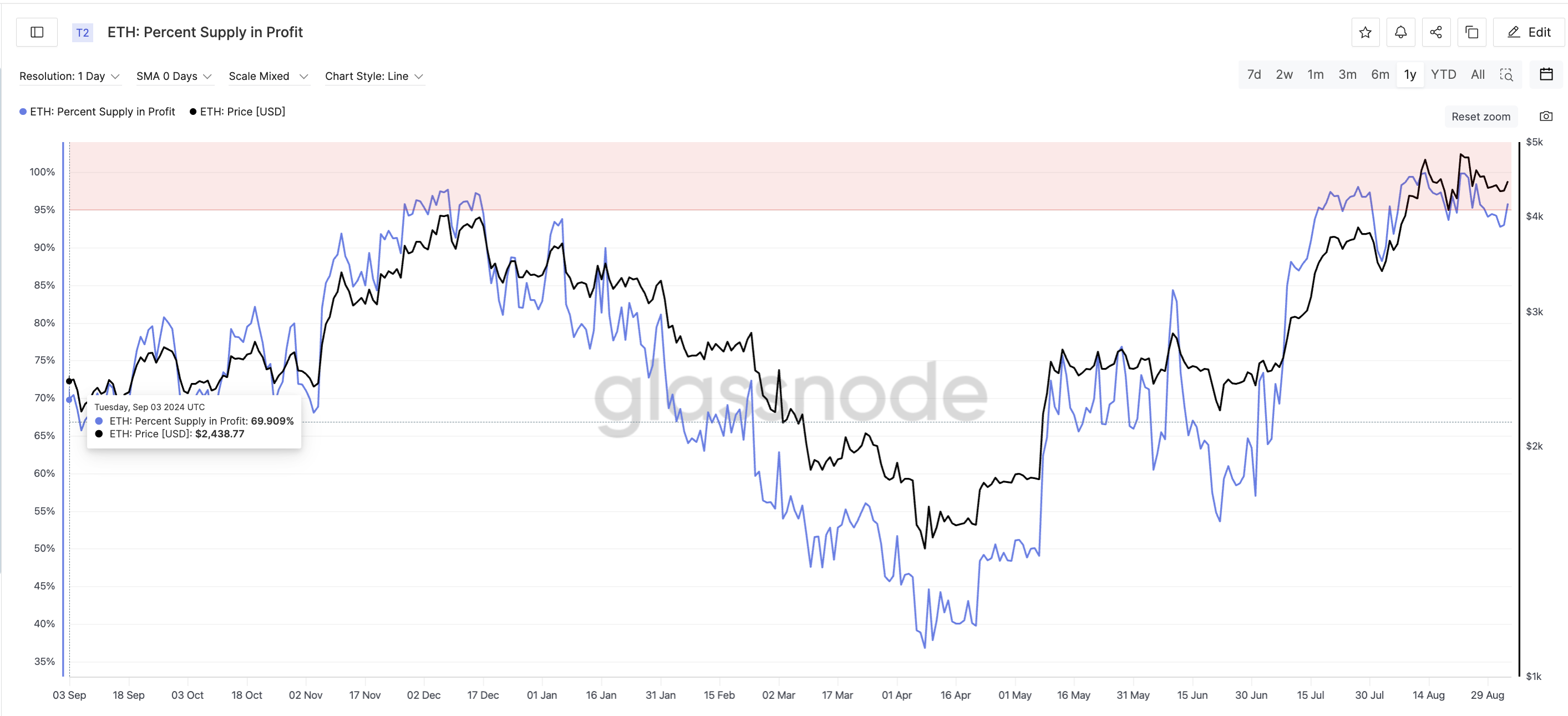 - Bitcoin in profit: from 73.8% in Sept 2024 to 90.1% today.