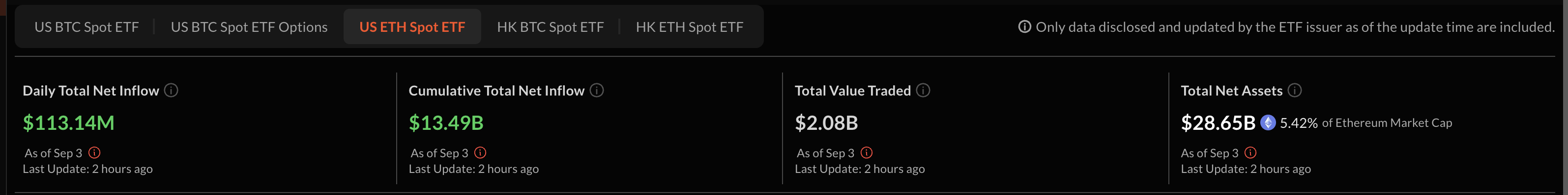 - Ethereum ETFs: lifetime inflows $13.49 billion.