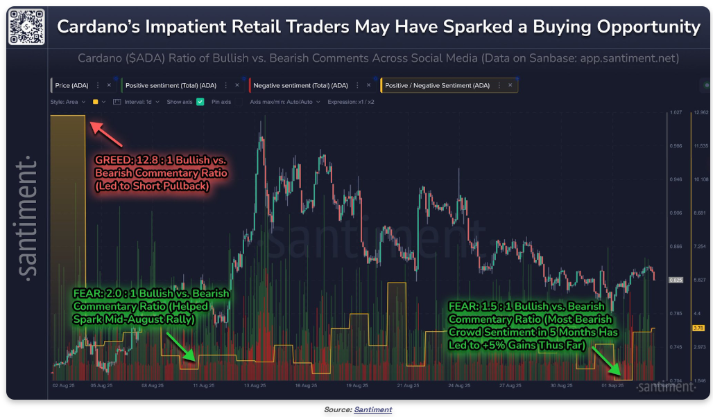 The Cardano community has suffered several FUD (Fear Uncertainty, and Doubt) events in the past few months. As a result, market data analysis from Santiment shows the ADA holders have bought into the fear of peak FUD in the past five months.
