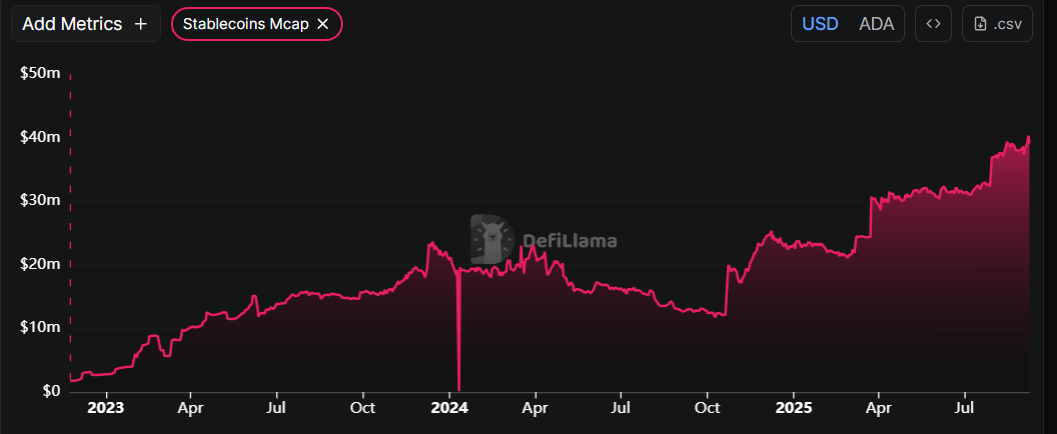 DefiLlama data shows that the ADA stablecoin market capitalization reached a record high of $40.37 million on Sunday. Rising stablecoin activity and value increase on ADA is positive, as they increase network usage and can attract more users to the ecosystem.