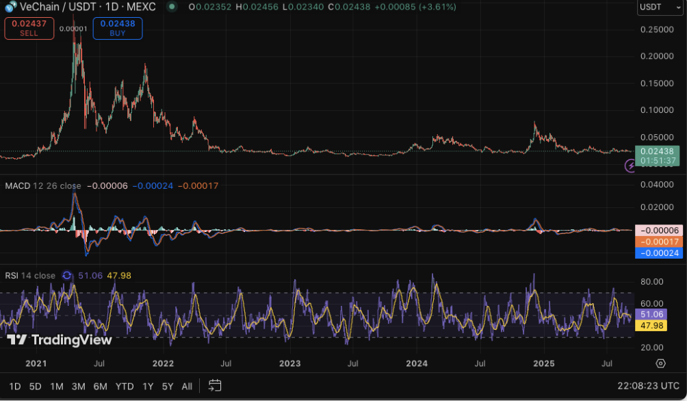 Besides these technical signals, VeChain’s fundamentals remain intact. The project continues to integrate real-world supply chain solutions and offers investors staking rewards through programs like Stargate. These incentives increase engagement while enhancing token utility, which could support long-term valuation growth.
