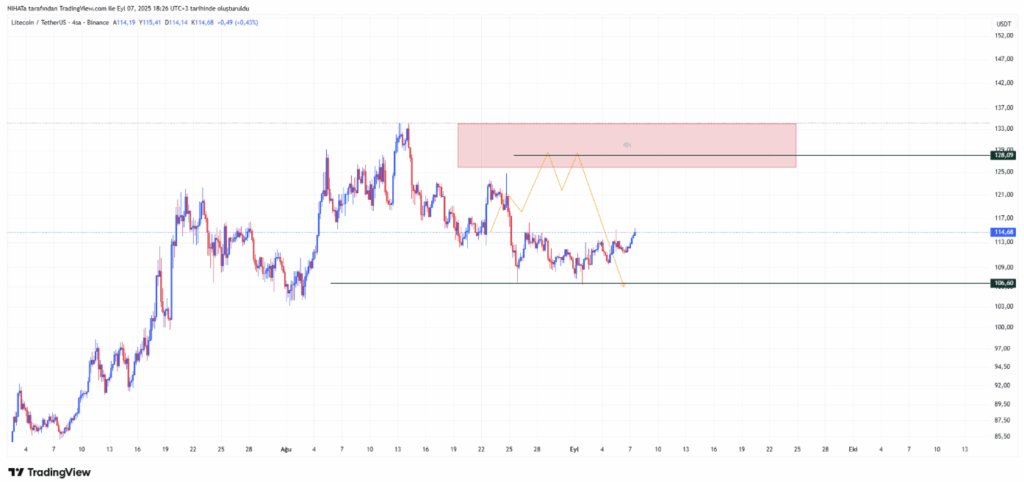 On the 4-hour chart, Litecoin is trading at just below a key resistance zone between $109 and $114. Recent higher lows indicate building demand, with analysts targeting the $128-134 range as the next possible supply barrier. If the momentum pushes the price above this level, it could cause a broader bullish breakout.