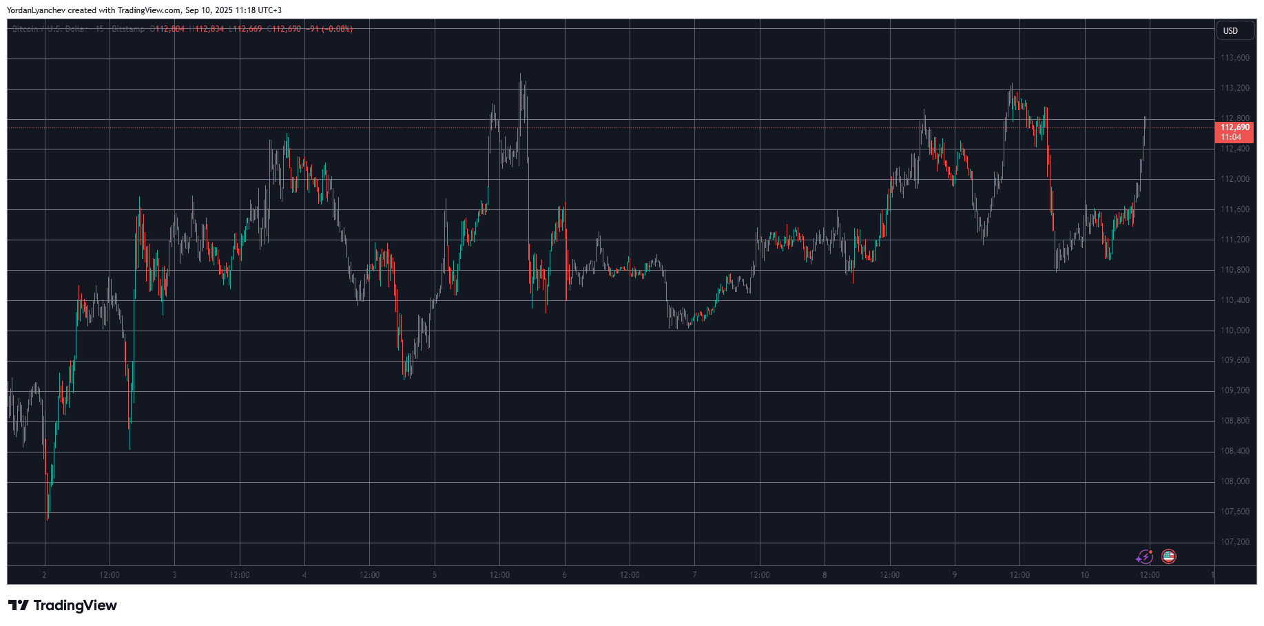 In the following hours, the digital asset dropped to $110,800 (on Bitstamp) before the bulls came back to play. They initiated another leg up on Wednesday morning, which drove BTC to almost $113,000 as of press time.