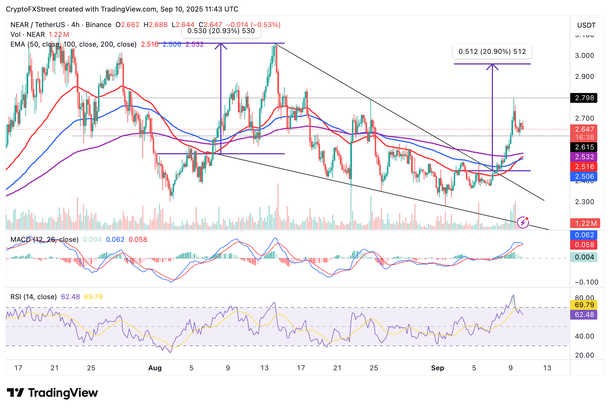 Near Protocol holds above support at $2.61 after facing a rejection due to the supply zone at $2.79. The brief correction followed a spike in volatility in the broader cryptocurrency market on Tuesday, which saw Bitcoin (BTC) trim its gains toward the $110,000 round-number support.