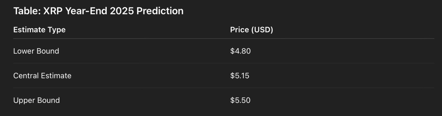 Pressed for a tighter forecast range, the chatbot predicted that XRP is most likely to close the year somewhere between $4.80 and $5.50.