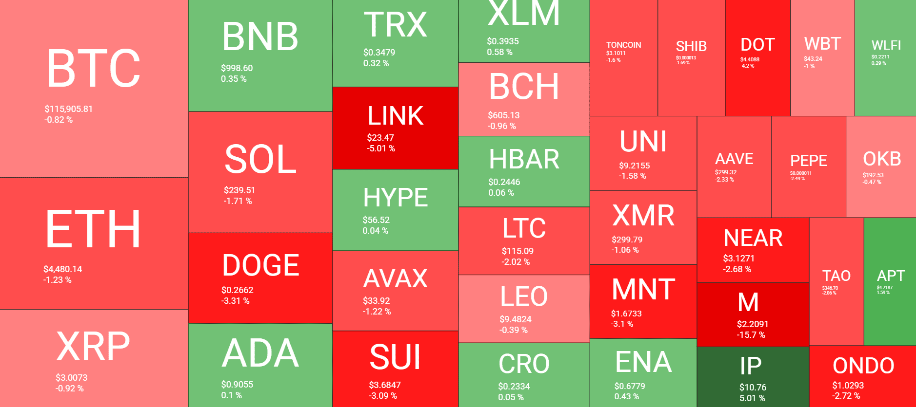 Massive Losses for These Altcoins as BTC Slips Below $116K: Weekend Watch