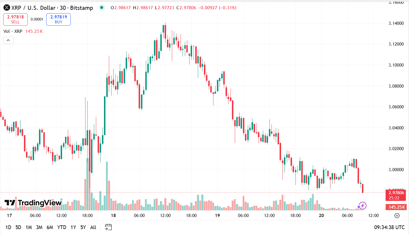Yet XRP is stuck around $2.98, with bulls unable to clear the $3 mark.