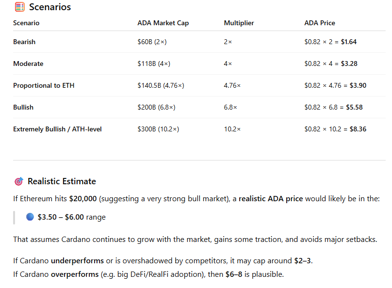 Cardano could rally multiple times from its current market valuation if Ethereum reaches an unprecedented price of $20,000.