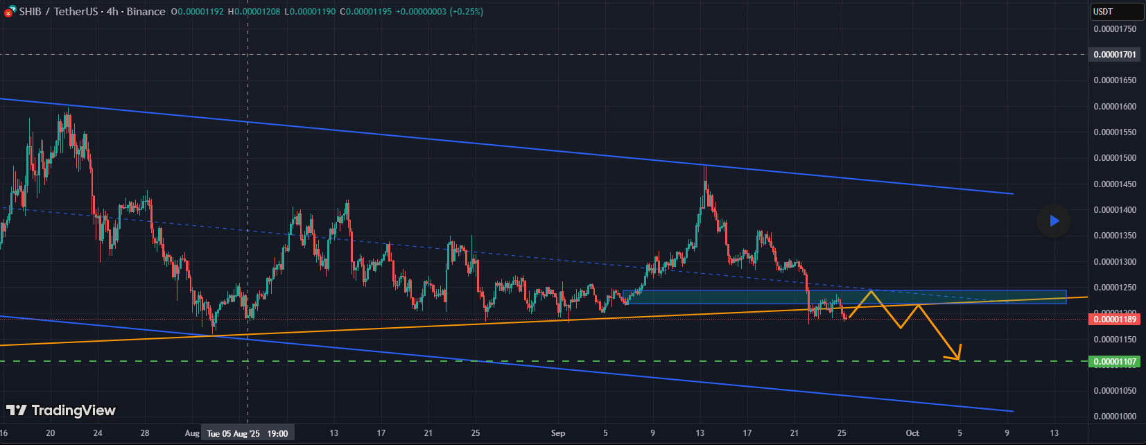 Meanwhile, analyst RTED_Investing shared a Shiba Inu prediction of the support levels to watch amid persisting bearish momentum. According to him, the $0.00001230 support level remains a key focus point, as its rejection would likely encourage a deeper correction.